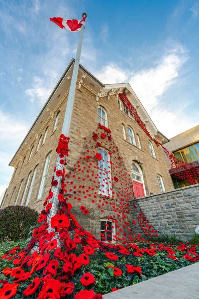This Remembrance Day, Niagara Falls is commemorating those who protected our freedoms, with a little help from the global community, by continuing to display a beautiful art installation of poppies cascading over the Niagara Falls History Museum.